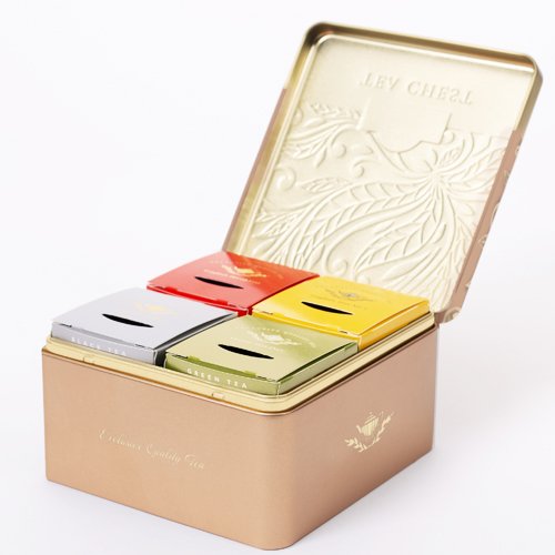 Tēja Klasiskais četrinieks sastāv no četrām tējas šķirnēm elegantā zelta kārbiņā, kura saglabā savu vērtību ilgi pēc beidzamās tējas pagatavošanas. Tā ir Angļu brokastu tēja, Grāfa Greja tēja, Daržilingas tēja un Angļu tēja No. 1.Tējas maisiņi ar aukliņām individuālā folijas iepakojumā, ļauj pilnībā saglabāt tējas garšu un aromātu. Uzlējumu izturēt 3-5 minūtes