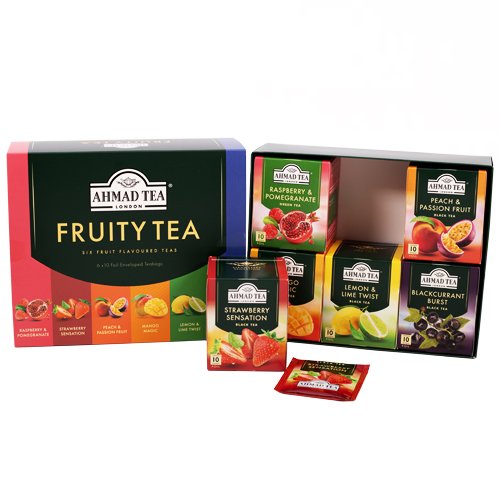Augļu tējas kolekcija ar 6 dažādām tējām: melnā tēja ‘’Citrona un Laima Tvists’’ , zaļā tēja ar zemenēm un kivi, melnā tēja "Upeņu Eksplozija, melnā tēja ’’Aveņu kaprīze’’, zaļā tēja ar mellenēm un melnā tēja ar persiku un marakuju. Tā ir ideāla dāvana īstajam tējas cienītājam. Tējas maisiņi ar aukliņām individuālā folijas iepakojumā, ļauj pilnībā saglabāt tējas garšu un aromātu. Uzlējumu izturēt 3-5 minūtes.