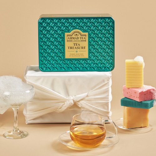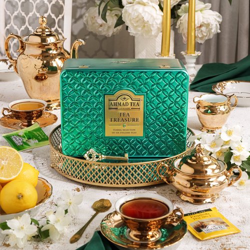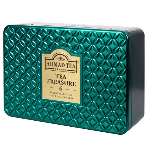 Шкатулка Tea Treasure Caddy –идеальная находка для любого любителя чая. Шесть ценных смесей, спрятанных в шкатулке, позволят вам наслаждаться великолепием Ahmad Tea ранним утром и от полудня до ночи. Ищете ли вы уютный аромат черного чая или хотите испробовать очищающий зеленый – в этом сундучке с чаем вы найдете все, что нужно в течение дня.